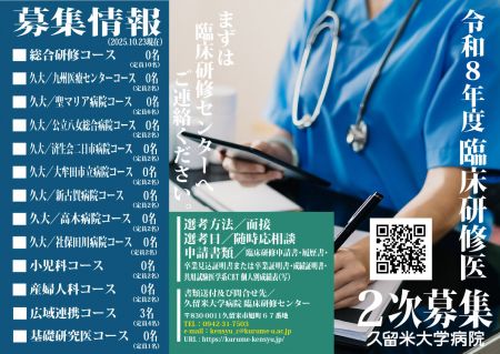 令和8年度臨床研修医(医科)の2次募集を行っておりましたが、
