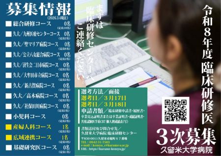 令和8年度臨床研修医 3次募集について下記のとおりご案内いたします。