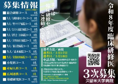 令和8年度臨床研修医(医科)の3次募集を行ないます。